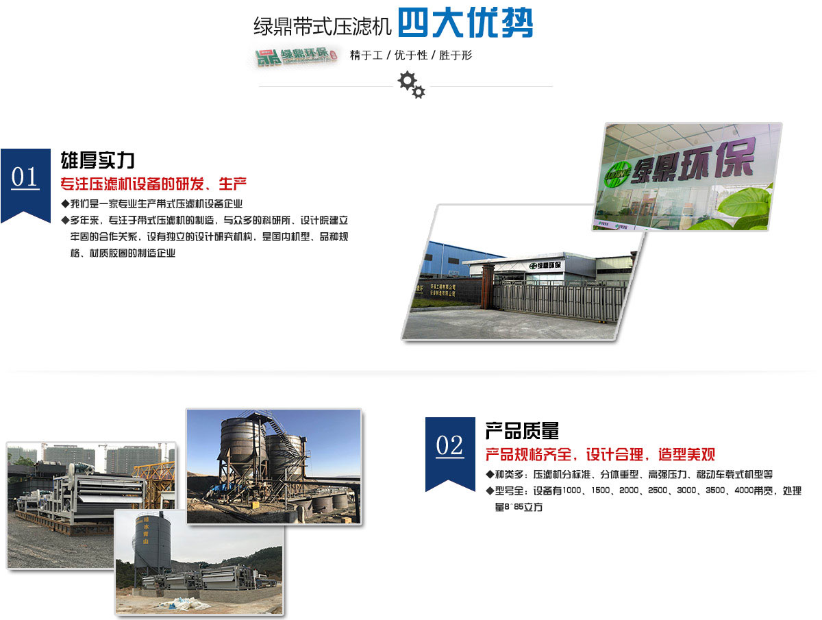綠鼎帶式壓濾機(jī)能連續(xù)自動(dòng)化生產(chǎn),處理量大、濾餅含水率低、能耗低、重工機(jī)械設(shè)計(jì)構(gòu)造,易操作、易維修、運(yùn)行可靠穩(wěn)定...